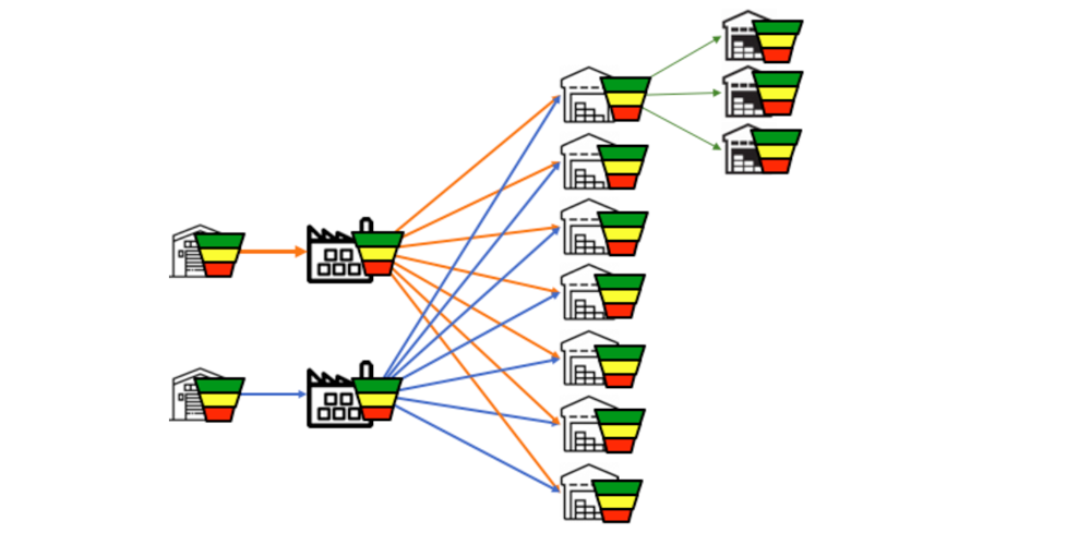 La cadena de suministro cuenta con 5 plantas productivas en Latinoamérica y en Colombia con más de 40 líneas de producción en dos plantas productivas, 300 proveedores, dos centros de distribución, llegando a prácticamente todos los países de Latinoamérica.